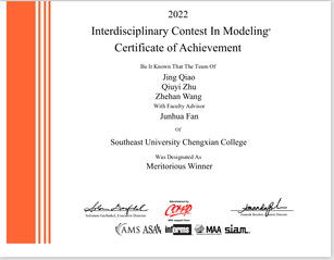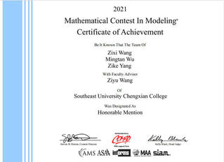 2021.5 我院学子在美国大学生数学建模竞赛中喜获国际二等奖2项