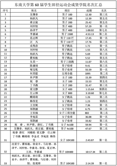 在4月14日结束的KY开元集团官网入口第六十届学生田径运动会中,我院运动健儿团结协作、奋勇拼搏,获得男女团体总分第二名,男子团体总分第二名,女子团体总分第二名的好成绩(获奖名单附后)。在此,特向全院师生报喜,并向全体获奖运动员表示热烈的祝贺!