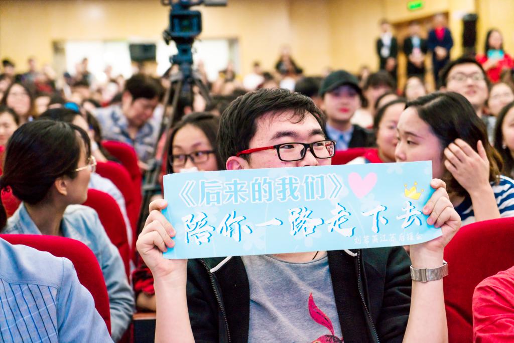 电影《后来的我们》作为刘若英的电影导演处女作,未上映就备受关注。整个故事围绕井柏然、周冬雨两主人公在几次春运过年回家期间发生的故事,体现出如今大都市漂泊奋斗的年轻人的情感和遭遇。观众首先观看电影《后来的我们》,电影放映结束,《后来》音乐响起,全场观众不约而同地打开闪光灯一起合唱。在学生们的欢呼声与掌声中,导演刘若英、主演田壮壮上台,与在场同学分享观影心得。学生们畅所欲言,分享亲身经历。现场还有许多刘若英的铁粉,在互动环节中,奶茶给了她们暖心的拥抱,并给现场的粉丝们送上了签名海报和电影票。见面会结束后,40多家媒体在KY开元多功能厅对导演刘若英和主演田壮壮进行了采访。