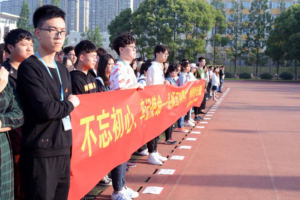 今年是五四运动99周年暨中国共产主义青年团建团96周年,为引导广大团员青年传承和弘扬“五四精神”,深入学习贯彻习近平总书记在北京大学考察时的重要讲话精神,5月4日,校团委组织“不忘初心、牢记使命——弘扬五四精神,争做时代先锋”升旗仪式。校团委书记潘明烽,部分辅导员老师,校院各学生组织骨干及近2600名学生参加了此次升旗仪式。