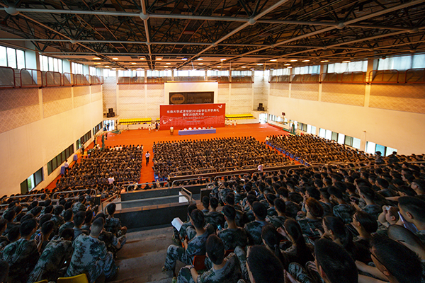 开学典礼新生认真聆听发言