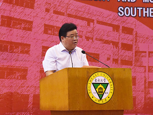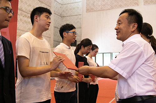 常务副院长郑建勇教授宣读获得2017—2018学年江苏省表彰的“三好学生”、优秀学生干部和先进班集体的喜报。左惟书记,郑家茂院长为获奖学生和集体代表颁奖。