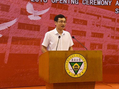 郑家茂院长首先致辞,他代表学院董事会和全体师生员工对2018级新同学的到来表示热烈的欢迎,并寄语新生:逐梦不息,成就无愧时代的精彩人生;勤学敏思,造就洞察明理的精彩青春;务实践行,铸就知行合一的精彩青春;精业求真,创造奋斗无悔的精彩青春;热爱生活,演绎绚烂多姿的精彩青春。鼓励在座学生要心怀梦想,燃起斗志、敢于拼搏,勇于付出。