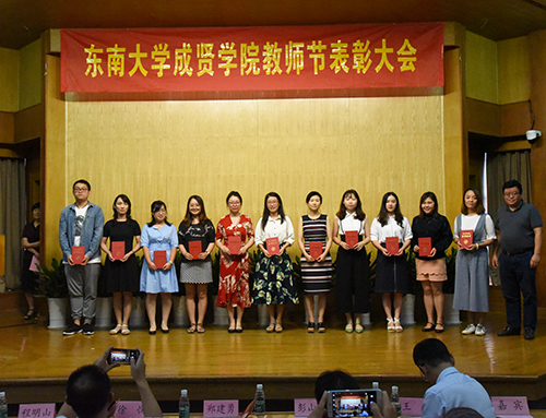 学生代表2016级电子科学与技术专业吉志彪同学代表全校同学向老师们致以最衷心的感谢、最崇高的敬意和最真诚的祝福,并呼吁全校学生传承“止于至善”优良学风,用自己的行动证明大学青春无悔,在老师指引下创造属于成贤与自己的光明未来。