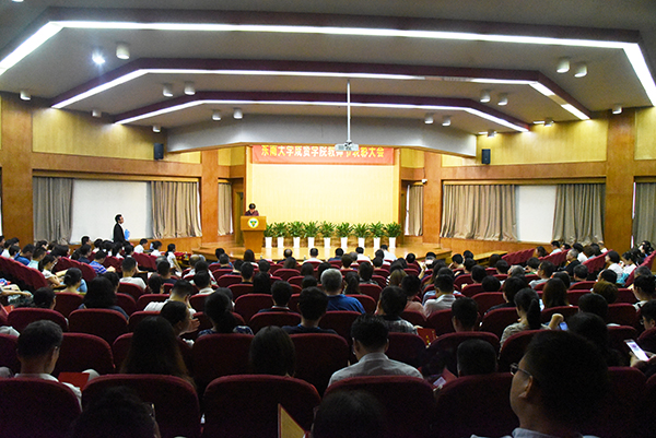 教师代表电子与计算机工程学院朱林老师在讲话中感谢学校对教职工的关爱,同时表达了作为教师对成贤学院的归属感与认同感。