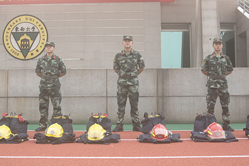 随后的疏散演练现场,学生在宿舍楼突然发生“火灾”的情况下,按第一时间赶赴现场的引导员的指引方向,有序地疏散至室外平台区域。在清点人员后,消防员模拟进入建筑物营救被困人员,最终全部人员安全疏散完毕,整场活动井然有序。