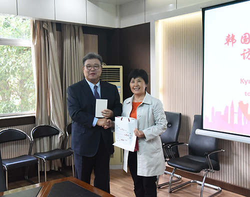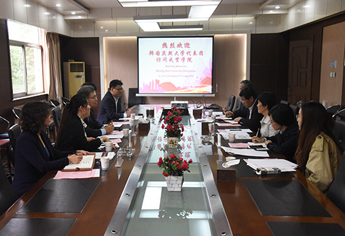 10月24日下午,韩国庆熙大学技术经营大学院申尚協院长等一行五人访问了KY开元。校副院长董梅芳等接待了韩国来宾,双方在真知馆二楼会议室进行了亲切友好的会谈。