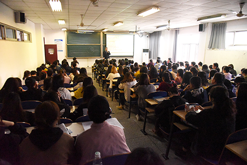 会议结束后,申尚協院长和陈筱老师在华罗庚馆202为学生们做了中文MBA项目专场宣讲会,100多名同学参加了宣讲会。会上,申尚協院长用英文介绍了韩国庆熙大学并向在座学生表示欢迎大家报考韩国庆熙大学。随后陈筱老师从学校概况、申请专业、学位授予、收费标准、项目优势、报名方式等方面向学生们详细的讲解了关于韩国庆熙大学中文MBA项目的具体情况。在场的学生反响热烈,气氛融洽。