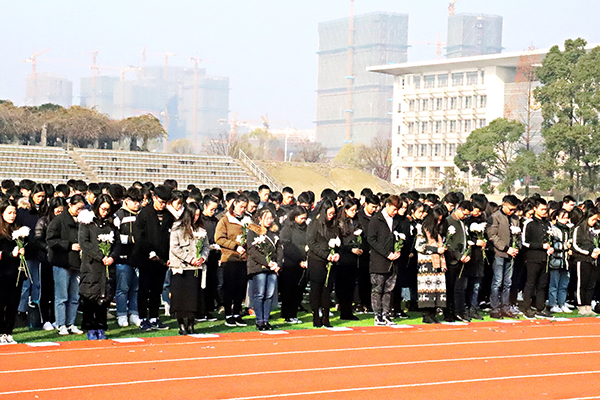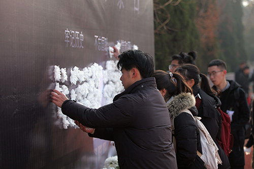 上午十时,校园同步悼念活动在雄壮的国歌声中拉开帷幕。随后,防空警报声划破南京上空,全体师生庄重肃穆,为在南京大屠杀中不幸遇难的同胞和为祖国牺牲的革命英烈集体默哀。活动中,同学们依次向南京大屠杀死难者国家公祭日纪念海报献上白菊,并在“和平许愿墙”上郑重写下对和平的祈愿;国旗团支部成员齐声诵读了《和平宣言》:“巍巍金陵,滔滔大江,钟山花雨,千秋芬芳……和平发展,时代主题,民族复兴,世代梦想。龙盘虎踞,彝训鼎铭,继往开来,永志不忘。”展现了东大成贤学子志在报国的决心。