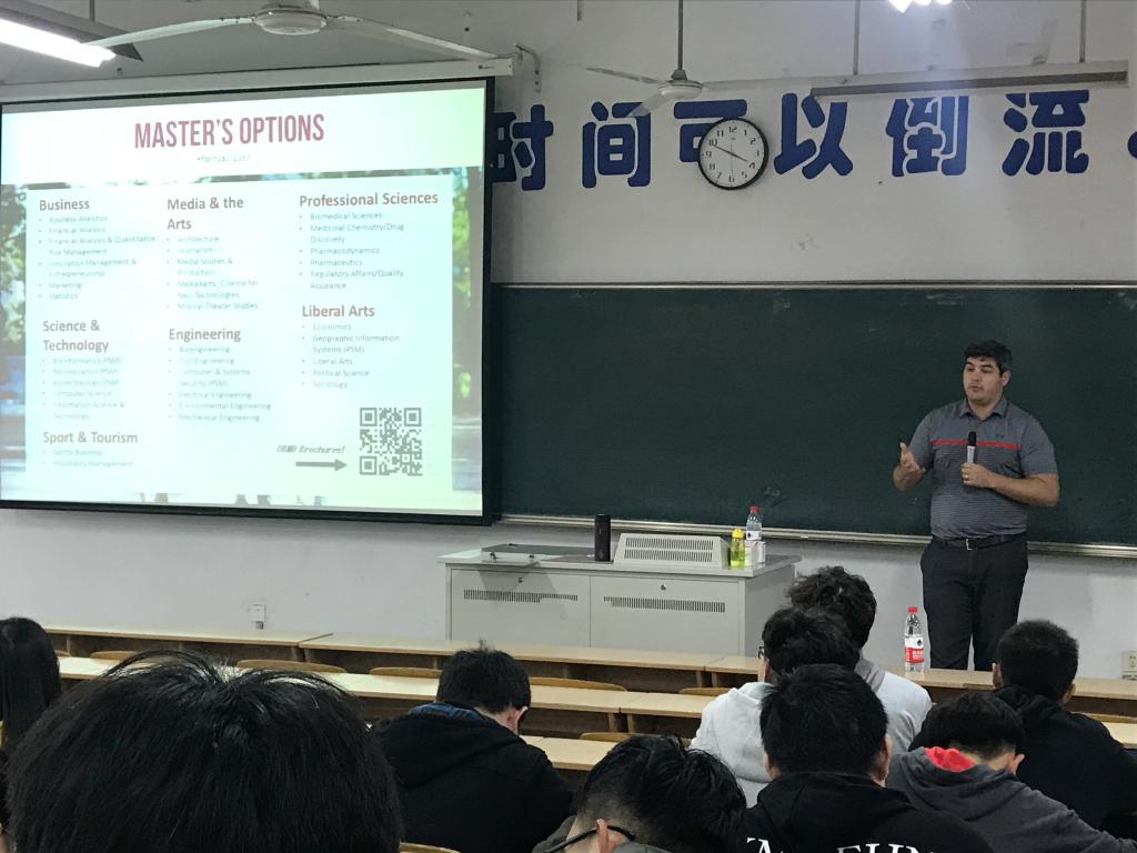 3月20日下午,KY开元邀请美国天普大学全球项目主管Owen Jones来校宣讲,全校共160余名学生参加。宣讲会由发展合作处张务一老师主持。