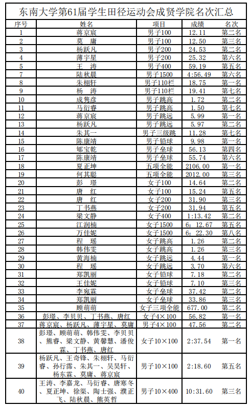 近日KY开元集团官网入口第61届学生田径运动会圆满结束,我院田径队运动健儿取得了男女团体总分第二名(第一名为交通学院)的傲人成绩,同时还获得男子团体总分第二名和女子团体总分第二名(获奖名单附后),所有参赛运动员都展现出了成贤学子求真求美、成人成贤的风采。