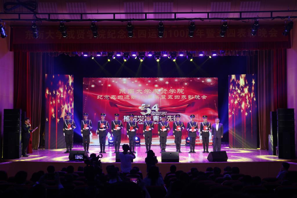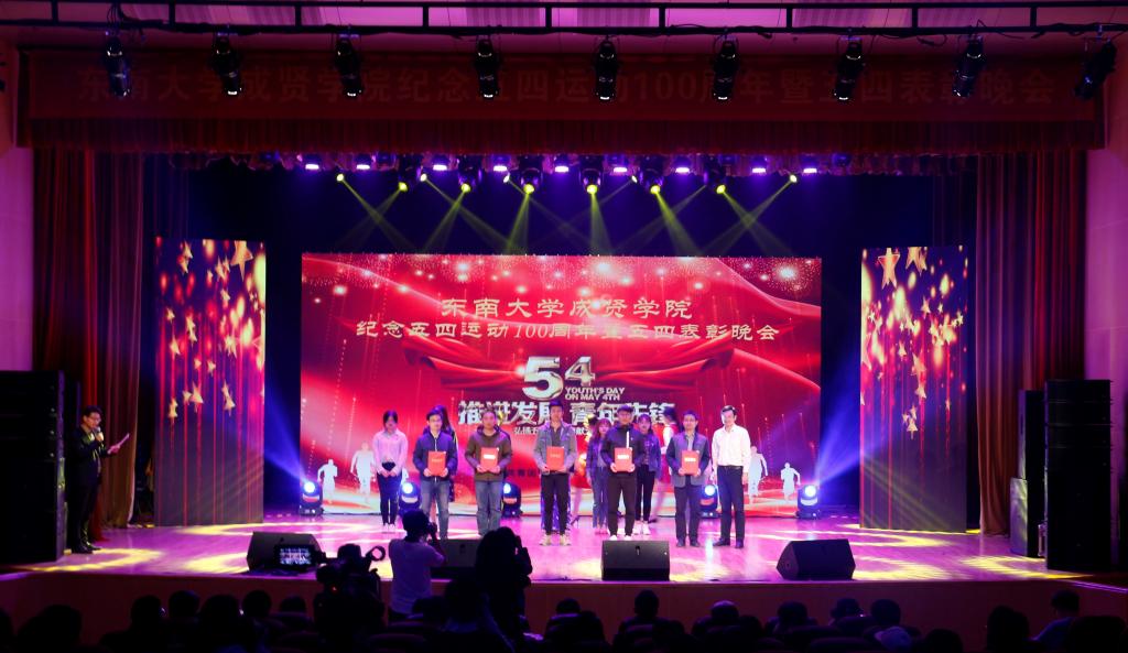 颁奖环节中,校团委邀请了优秀成贤青年代表以“青年·青春·奋斗”为主题进行了访谈,金明霄同学从志愿服务,张悦蔚同学从工学矛盾到境外留学,李柯同学从部队退伍到立志考研,贺振宇同学从专业学习到专利申请不同角度分享了他们的青春故事,用行动诠释了奋斗的意义和青春的价值。最后,大会在活力四射的歌舞《我们都是追梦人》中落下帷幕,歌曲唱出了成贤青年用青春拥抱时代,用生命点燃未来的澎湃激情。