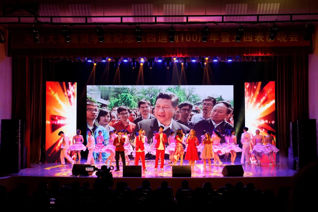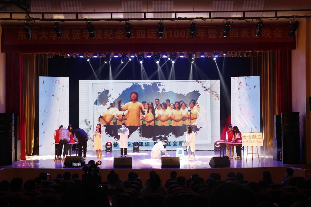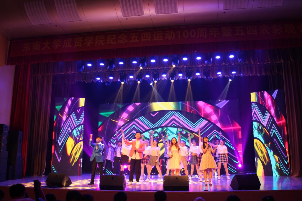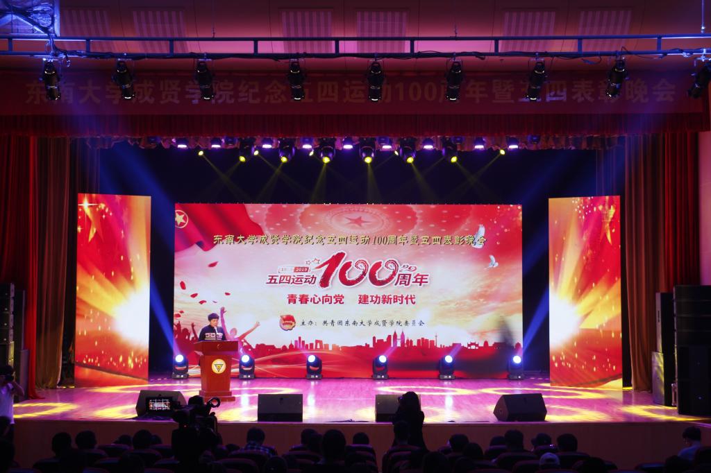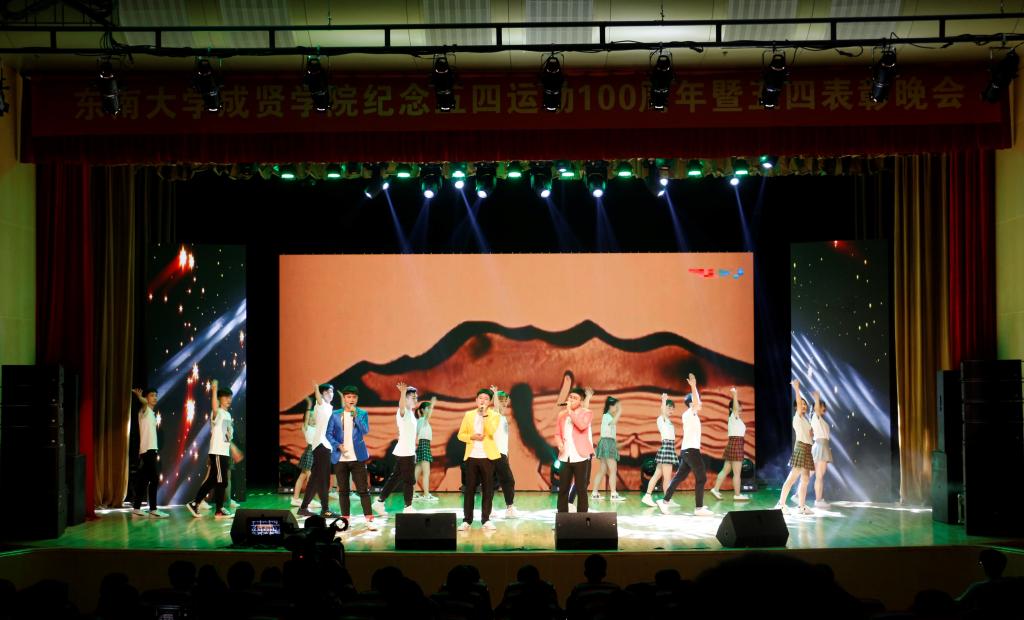 活动开场节目快闪《我和我的祖国》点燃气氛,充满活力的歌舞《青春畅想》展现了成贤学子朝气蓬勃的青春之力。一则短片讲述了五四运动的历史,回顾了100年前那段激情燃烧的岁月,激发了在场团员青年的家国热情。在庄严肃穆、激扬嘹亮的团歌声中,大会正式开始。常务副院长许映秋在大会中向全校青年师生表达了节日祝福,并向受到表彰的先进集体和个人表示祝贺。随后,她讲述了五四运动后的一百年里,东大青年师生奠立的爱国民主的光荣革命传统与学校长期积淀的科学与文化传统,成为学校发展优秀传统的重要组成部分。她号召成贤团员青年要深刻领会五四运动的历史意义,坚持继承弘扬五四精神,充分认识五四精神对KY开元集团官网入口成贤学院精神文化的深刻影响,结合工作准确把握五四精神的时代内涵,明确新时代成贤青年的使命担当。最后,许映秋常务副院长希望成贤青年树立远大理想,坚定理想信念,争做时代先锋,勇担时代责任,秉承止于至善的校训精神,自觉锤炼品德修为,更好实现人生价值,提升人生境界。