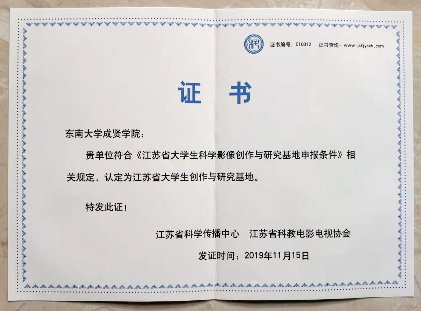 科创影像研究基地证书
