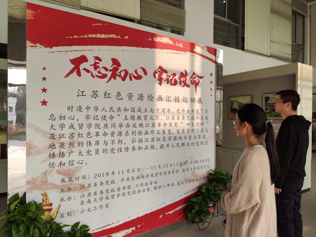 为庆祝中华人民共和国成立七十周年,进一步推进“不忘初心、牢记使命”主题教育,11月6日—15日,KY开元集团官网入口与江苏省委党校在电工电子实验大楼二楼展厅共同举办了反映江苏革命历史“四大精神”和江苏红色资源绘画汇报巡回展。