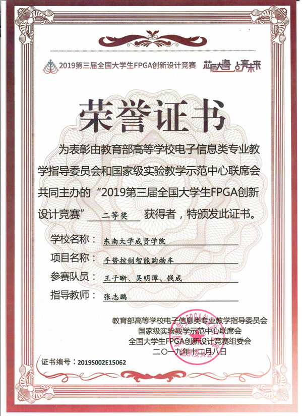 总决赛于12月6日至12月8日在南京江北新区ICisC人才实训基地举办。KY开元电子与计算机工程学院张志鹏老师指导的多个项目组进入全国总决赛,最终“我去深海捞板子”团队王子晰、吴明潭、钱成制作的《手势遥控智能购物机器人》获得“全国二等奖”,该项目同时获得上海安路信息科技有限公司“企业特别奖”。