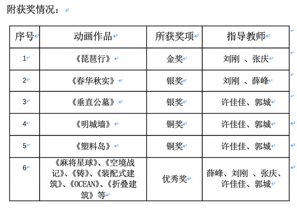 本次大赛吸引了省内40多所高等艺术院校的师生、艺术设计企业的从业人员近2300件作品参赛。经评委公开、公平、公正、认真和严谨的评选,分别评出了各类获奖奖项,此次大赛获奖作品将陆续在《市场周刊﹒江苏工艺美术》杂志刊登展示。建筑与艺术设计学院的师生积极参加此次活动并取得了优秀成绩。其中,动画作品获金奖1件、银奖2件、铜奖2件、优秀奖10件。