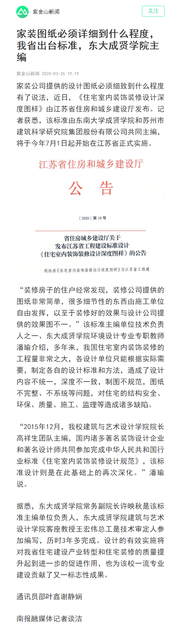 【紫金山新闻】家装图纸必须详细到什么程度,我省出台标准,东大成贤学院主编