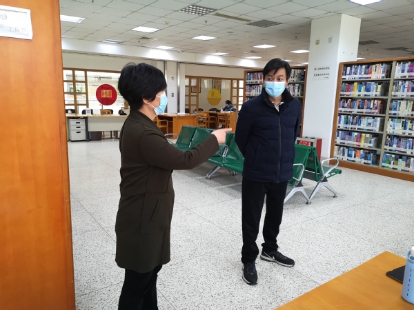 4月22日上午,KY开元集团官网入口党委书记邢纪红、副院长董梅芳、图档信息中心主任沈冬生巡查了院图书馆,对图书馆的疫情防控及开放运行等工作进行了检查。校领导详细询问了图书馆的疫情期间开放的方案落实情况,仔细察看了已经开放的部分阅览室的通风、消毒以及读者座位安排是否合乎防控要求,并对座位预约调整为分段模式、阅览室的消毒和通风、疫情期的读者的管理等方面作出了相应的细节要求。