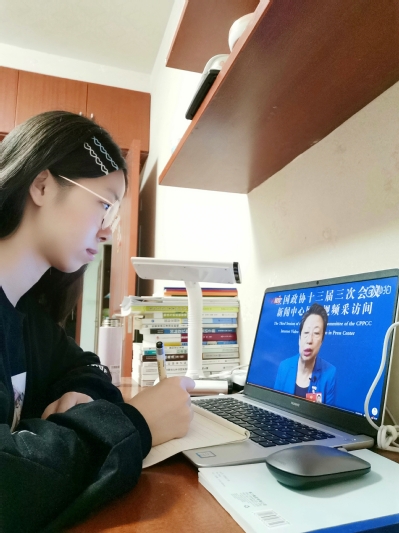 土木与交通工程学院2018级工程造价2班周卓莹同学表示,两会带着全国人民的寄托胜利召开,报告文字精炼,内容翔实。作为新时代青年学生干部,她将坚定信念,在疫情防控工作中毫不退缩,逆流而上,坚守岗位,用自己的实际行动为成贤学院青年学子做出表率,展现青年一代的责任与担当。2020是全面建成小康社会目标实现之年,她将用饱满的热情和奋斗的汗水,将新时代青年的担当书写在祖国大地上,为打赢脱贫攻坚战贡献自己的青春力量!