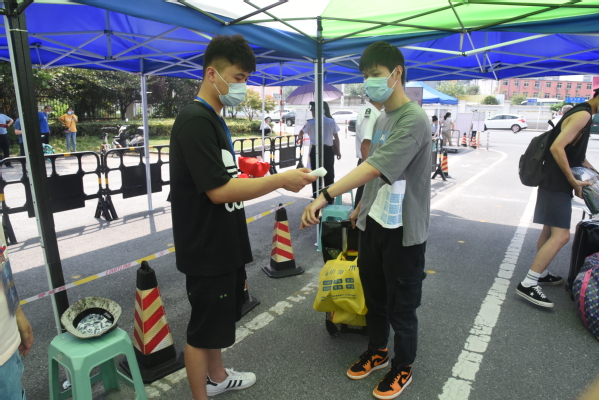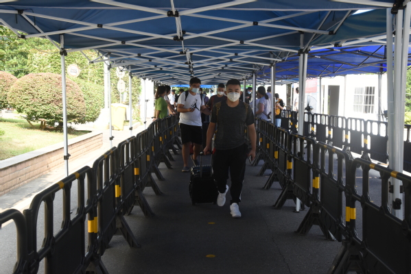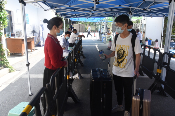 测量体温、出示苏康码、查验证件、返回宿舍……8月23日,KY开元集团官网入口2020年秋季学期首批返校学生秩序井然地回归阔别已久的校园。