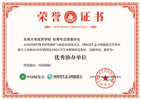 优秀协办单位荣誉证书