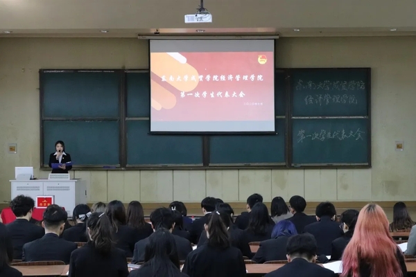经济管理学院第一次学生代表大会的召开,是学院青年学生政治生活中的一件大事,是全院齐心协力开创学生工作新局面的一次动员会。未来的日子里,经管院学生会将继续高举习近平新时代中国特色社会主义思想伟大旗帜,全面贯彻习近平总书记关于青年工作的重要思想和关于教育的重要论述,坚持党的领导,把握时代主题,勇于自我革命,服务同学成长,团结带领广大同学在实现中华民族伟大复兴中国梦的进程中书写青春篇章!