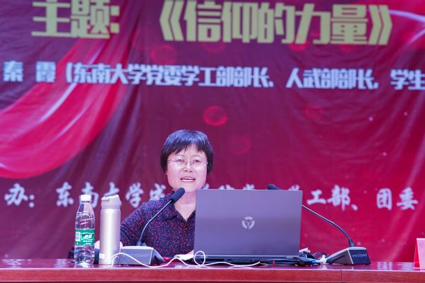讲座中,秦部长从“信仰的力量、什么是信仰、坚定正确的信仰”三个大方面分别展开,通过对爱国电视剧、电影、疫情中的国家制度、中国的快速发展的精彩分析,引出了对信仰的认识和解读,阐述了信仰对于国家、民族乃至个人的重要意义。紧接着,秦部长又结合古今中外实例中的事与人,深入浅出地指出了国家民族坚持正确信仰的重要性,提出个人应当明确树立正确的信仰,坚定不移地听党话、跟党走;通过回顾英烈事迹,列举任正非、郎平等知行合一践行信仰的人物事例,再次诠释了信仰的力量。最后,秦部长以习近平总书记的讲话为引线,信仰是人类灵魂的家园,是精神力量的源泉,呼吁同学们要以史为鉴,树立正确的信仰,坚持学习坚定信仰,知行合一践行信仰,理性而真诚地爱党爱国,用汗水和实际行动为中华民族伟大复兴贡献青春力量,做社会主义事业的建设者和接班人。