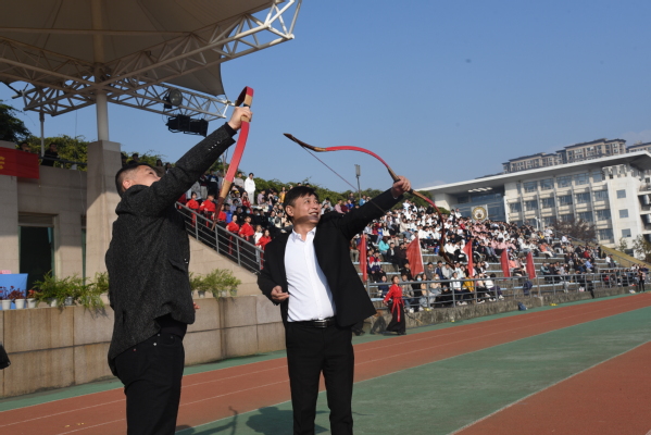 常务副院长许映秋致开幕词,她对本次运动会的顺利举行表示热烈的祝贺,向参加本次运动会的全体运动员、裁判员致以诚挚的问候,对为筹备本次比赛的全体工作人员表示衷心的感谢,并希望广大师生积极投身体育锻炼,强身健体,以更加充沛的精力、强健的体魄和饱满的热情,投入到工作和学习中去。邢纪红书记宣读《关于表彰2019-2020学年十佳运动员和体育先进工作者的决定》。运动员饶鸿儒同学、裁判员丁亮老师分别代表参加运动会的运动员和裁判员郑重宣誓。金凯主任和邢纪红书记射出“司令穿云箭”,学校射箭队进行射箭表演。蒋波书记宣布运动会开幕。