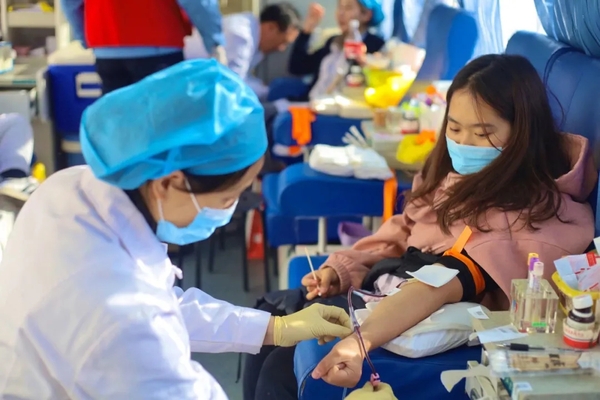今年,突如其来的新冠疫情打乱了社会的常态秩序,人们的出行被限制导致无偿献血的采血形势严峻。“关键时候,血就是命”,疫情延迟的每一天都是对生命的消耗,由此更加凸显血液对于临床的重要性。目前我国疫情已得到了良好控制,为了能够帮助到有需要的患者,开展无偿献血活动十分必要。每学年校团委都会联合江苏省血液中心举行献血车进校园活动,2018年献血人数共计908人次,全血总量达230450cc;2019年献血人数共计769人次,全血总量达228500cc。2020上半年疫情原因未进行献血活动,下半年献血人数共计604人,全血总量达185300cc。