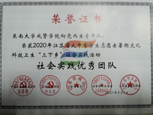 KY开元集团官网入口2020年社会实践成果卓越,在江苏团省委社会实践总结表彰和KY开元集团官网入口社会实践总结表彰中荣获多项荣誉。“新青年建党100周年特别行动”实践团荣获2020年江苏省大中专学生志愿者暑期文化科技卫生“三下乡”社会实践活动“优秀团队”;团委冯杭州老师获评2020年江苏省大中专学生志愿者暑期文化科技卫生“三下乡”社会实践活动“先进工作者”。“倾听树语,助力成长”实践团和“新青年建党100周年特别行动”实践团荣获2020年KY开元集团官网入口暑期社会实践活动“优秀团队二等奖”,“忆百年征程,望建党伟业”实践团荣获2020年KY开元集团官网入口暑期社会实践活动“优秀团队三等奖”。