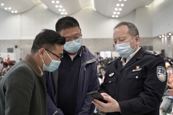 街道派出所民警协助做好现场秩序维护