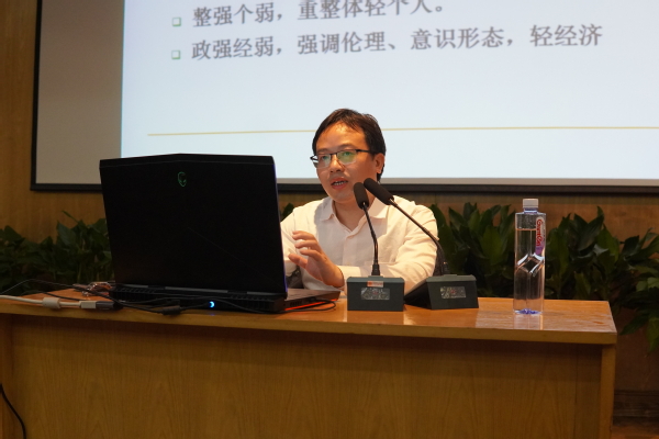 讲座伊始,张教授用多种模型生动形象地概括了世界上各个现代化国家的特点,总结了时代背景及其发展条件,并结合具体实例,详细分析了各个模型的代表性国家,让同学们从哲学和科学的角度充分理解、体会各个国家的现代化发展。随后,张教授从改革开放出发,围绕社会结构的革新、政治经济文化等多方面的变化、世界产业链的重组和金融危机后全球产业链解构等几个方面,进行了深入浅出的讲解。最后,张教授对我国的未来发展进行了展望,改革发展是在曲折中前进的,我们要坚定“四个自信”,提升发展质量。