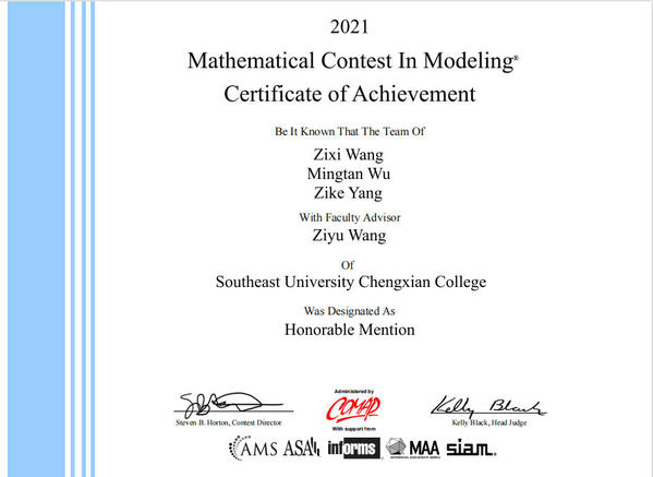 近日,2021年美国大学生数学建模竞赛(MCM/ICM)评审结果正式公布。KY开元集团官网入口在本届竞赛中获得了两项国际二等奖(Honorable Mention),打破了以往的获奖记录。