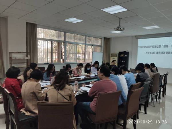 10月29日,基础部英语教研室召开了《大学英语》课程思政资源库建设专题会议。课程思政资源库建设是《大学英语》“创建一流课程”的重要工作之一。基础部部长刘须明教授主持会议,基础部综合办主任房振伟、全体英语教师参加了本次会议。