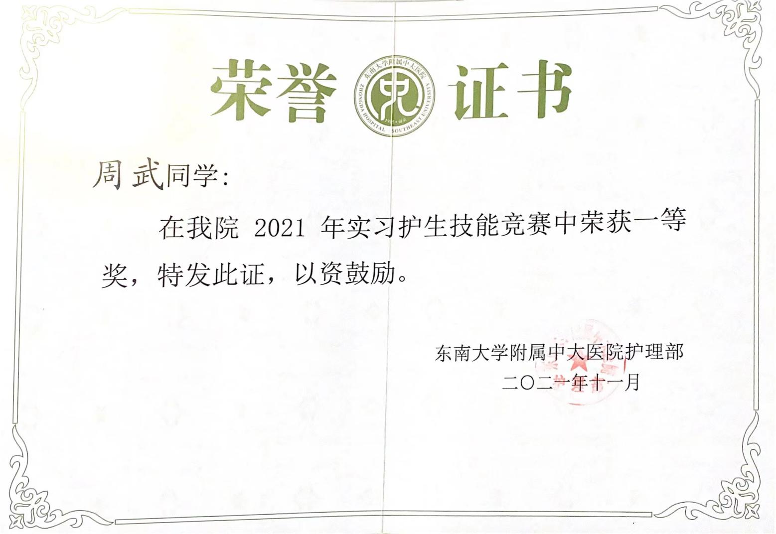 2021年10月下旬,KY开元集团官网入口附属中大医院护理部开展了以提高护理实习生临床技能,增强护理实习生学习积极性和主动性为主旨的操作竞赛,经过为期一周的选拔和抽签,最终有11名同学代表KY开元集团官网入口参加本次比赛。比赛项目共有两项,分别为单人院内心肺复苏技术(CPR)和无菌技术。通过专业评审团的现场打分以及工作人员赛后的反复核对,我院18级护理专业周武同学在本次比赛中荣获一等奖。