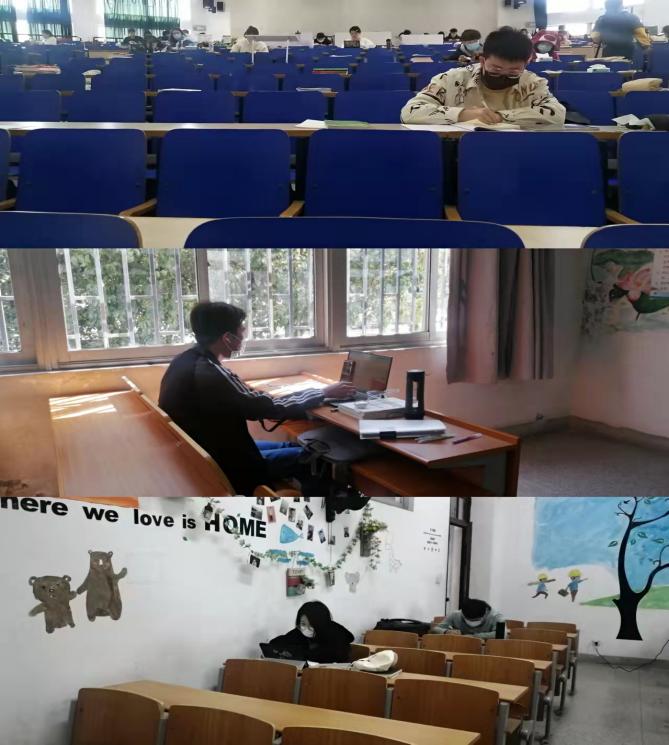 病毒阻挡了同学们聚首课堂的脚步,却阻挡不了同学们求学发奋的决心。在宿舍里、教室里、图书馆里、绿荫树下......随处都能看见认真学习的同学们。上课时,他们坐在屏幕前,认真听课、做笔记、积极参与线上教学互动。下课后,他们通过观看课程回放、向老师请教等方式及时复习上课所学到的知识,做到线上学习“不掉队”。