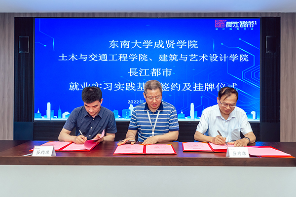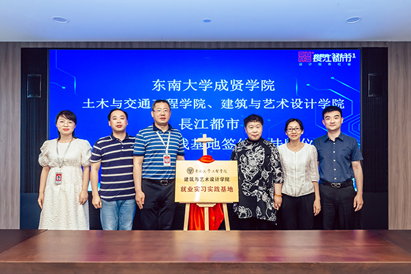 人力资源部经理刘友存则向与会领导、老师介绍了从2013年起入职长江都市的19位成贤校友的职业发展情况,他们在结构设计、建筑设计、室内设计、环境设计等多个岗位,展现了成贤学子扎实的专业功底和良好的综合素质,为企业的快速发展贡献了自己的青春智慧。科研技术管理部经理韦佳以《坚持“双创”战略驱动持续发展——长江都市设计创优与科技创新》为主题,介绍了长江都市从传统的设计企业向工程设计与科技创新相集合的科技企业的转型之路,介绍了企业近年来在绿色建筑与装配式建筑、办公建筑的创新应用、科研课题与技术研究等方面所取得的成果。随后土木与交通工程学院院长郭正兴、建筑与艺术设计学院党总支副书记邵叶鑫,分别代表两个学院与南京长江都市建筑设计股份有限公司总经理董文俊签订了《就业实习实践基地协议书》并挂牌“KY开元集团官网入口就业实习实践基地”。