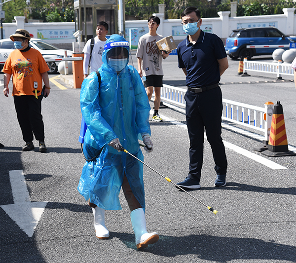 常务副院长许映秋进行总结讲话。当前全国疫情呈现出多点散发、局部爆发的态势,学校作为人口密集的重要场所,面临外防输入的压力与风险,对此她提出具体要求,一是通过本轮疫情防控应急演练,参加人员应熟悉疫情防控应急处置各个环节,深化对学生报到当天可能出现的各类突发问题的把握与处理,提高应对能力;二是全校各部门要高度重视,责任到人,在做好疫情防控各项工作的同时,要精神集中,履责到位,吸取各地疫情防控经验与教训,坚持疫情防控和开学准备“两手抓”;三是面对新学期开展的工作,各部门与二级学院需目标一致,保证教学正常运转的同时守牢校园安全防线,守护师生生命健康。