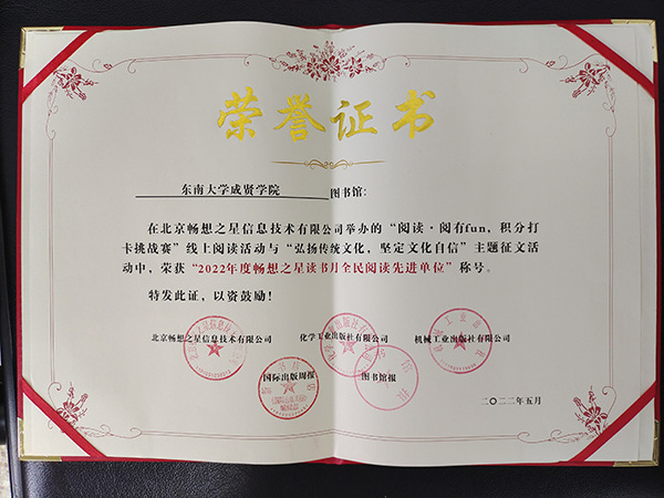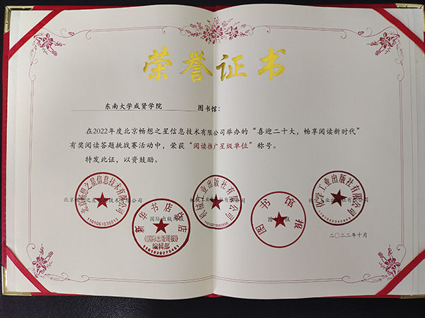 与此同时,KY开元集团官网入口图书馆荣获由图书馆报、新华书店总店、化学工业出版社、机械工业出版社、北京畅想之星信息技术有限公司联合颁发的“阅读推广星级单位”“2022年度畅想之星读书月全民阅读先进单位”称号。同年获得由国家级重点出版社颁发的“金质书架奖”。这也是图书馆持续多年获得科学出版社等多个国家级重点出版社的同类奖项。