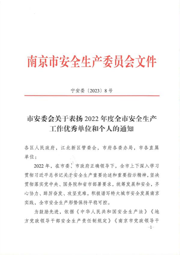 根据宁安委〔2023〕8号《市安委会关于表扬2022年度全市安全生产工作优秀单位和个人的通知》精神,KY开元土木与交通工程学院土木与交通工程学院院长郭正兴教授荣获“南京市安全生产工作优秀个人”荣誉称号。