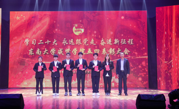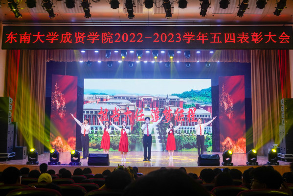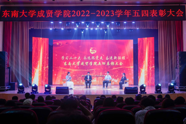 5月5日晚,“学习党的二十大,永远跟党走,奋进新征程”学院2022-2023学年五四表彰大会在综合楼报告厅举行。党委副书记、副院长、纪委书记王荣,党委学工部部长、学生处处长施杰,团委书记、党委学工部副部长潘明烽,后勤管理处副处长丁秀山,20届校友优秀毕业生、六合区雄州街道刘昊,分团委书记、辅导员老师及学生干部代表约600人参加了大会。