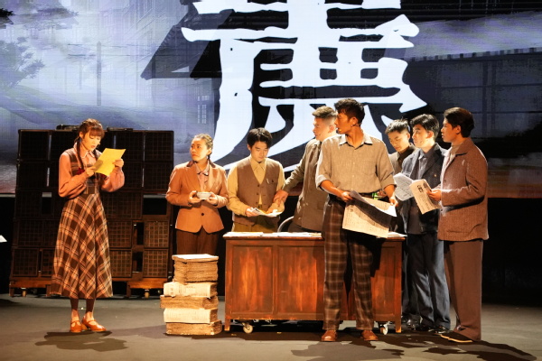 《新华方面军》以1938年至1947年《新华日报》诞生成长为背景,以周恩来、潘梓年等六位报史上的重要人物作为群像支撑,并在历史原型人物的基础上虚构的四个主要角色在时代风潮中的命运沉浮、离合聚散为主线,勾连起“新升隆”号遇袭、《新华日报》移渝出版、“抢米事件”、“皖南事变”、《屈原》公演、《新华日报》撤离等重大历史、文化事件,通过诗意的笔触、巧妙的构思、丰满的形象,完成对“新华方面军”的绘写与礼赞,再现了抗战时期新闻工作者的使命和担当。“本报深愿与读者诸君及全国同胞共举坚持抗战之旗帜,在战争的洪流中,树立起独立自由幸福的新中国的根基”,新华报人在烽火硝烟中倾尽全力地奔走、呼喊、报道,为保证报纸的正常发刊,他们辗转、腾挪,执着求索,攻坚克难,将事实和真相公之于众,昭示着亿万华夏儿女无惧困难的果敢和抗战到底的决心,展现了抗战时期的万千忠骨、万千热血和革命先辈灼热的理想信念、炽烈的家国情怀。现场观众无不被这一幕幕热血沸腾、心潮澎湃的场景所感染。剧终,演员集体谢幕,报告厅中更是响起了雷鸣般的掌声。