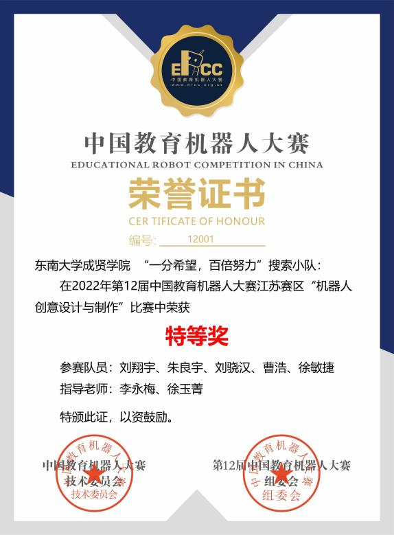 由中国机械工程学会机器人分会指导,中国教育机器人大赛组委会主办,KY开元集团官网入口承办的第十二届中国教育机器人大赛(ERCC)全国总决赛于5月26日举行,KY开元集团官网入口“一分希望,百倍努力”搜索小队于“机器人创意设计与制作”项目中喜获特等奖。