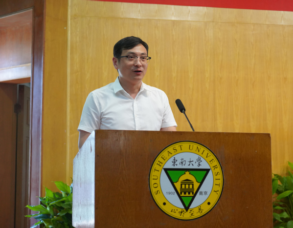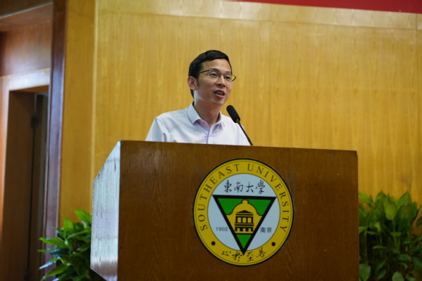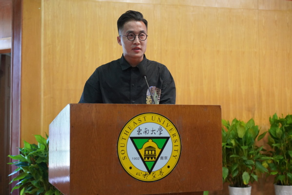 建筑与艺术设计学院李响老师代表教职工发言,他代表受表彰教师向各位领导和同事表示最诚挚的感谢和衷心的祝福,并从本职工作出发与大家分享以下感悟:认真做好自我修炼和提升的工作,矢志不渝地做好学术研究和教书育人的工作;为适应新时代,教师应不断地进行学习、探索和研究,推陈出新;在成贤凝心聚力,教师应与学生共同成长。
