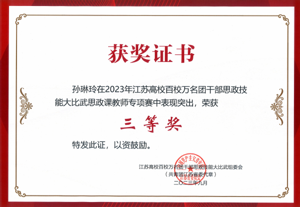 为深入贯彻落实习近平总书记在学习贯彻习近平新时代中国特色社会主义思想主题教育工作会议上的重要讲话精神,紧紧围绕学习宣传贯彻党的二十大精神主题主线,落实习近平总书记关于共青团在高校学生思想政治工作中要发挥主力军作用的重要要求,进一步聚焦思想引领主责主业,团结引领团员青年坚定信念跟党走,勇做走在新时代新征程的奋进者。9月25日,由共青团江苏省委、江苏省委教育工委、新华日报社、江苏省学生联合会联合主办的“学思想、跟党走、建新功”江苏高校百校万名团干部思政技能大比武在宿迁学院顺利举行。KY开元建筑与艺术设计学院分团委书记江晶荣获“专职团干部专项赛”一等奖,制药与化学工程学院综合办主任刘静荣获“兼挂职团干部和青年教师专项赛”二等奖,土木与交通工程学院辅导员孙琳玲荣获“思政课教师专项赛”三等奖。