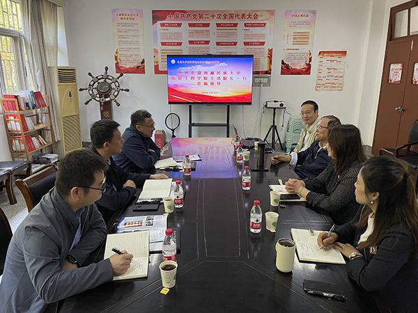 10月24日上午,西藏民族大学信息工程学院院长王浩、副院长汤磊、土木学科负责人高志伟一行来KY开元土木与交通工程学院交流访问。土木与交通工程学院院长郭正兴、党总支书记杨阳、常务副院长郭应征、副院长温旭丽以及土木与交通实验实训中心相关老师热情接待了来宾并进行了友好交流。
