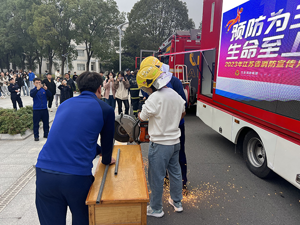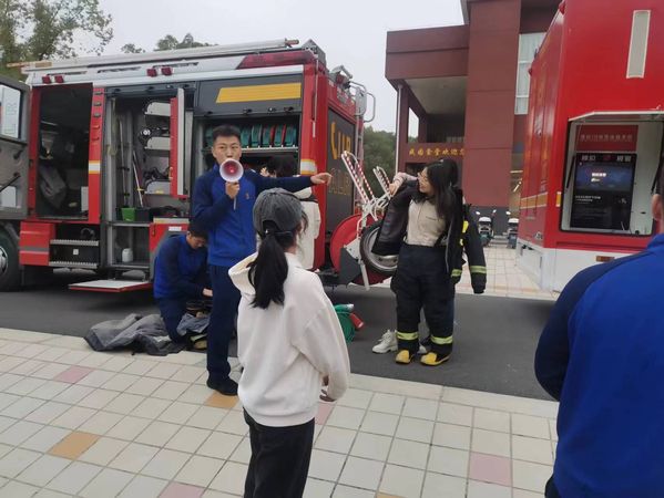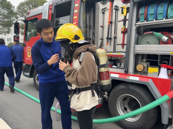活动现场设置了VR体感、救援装备、穿戴装备三个体验区,在南京消防高新大队朱迅进行消防常识的宣讲后,现场师生在消防员的引导下至不同体验区进行了实际操作。通过VR体感等现代信息技术的实景模拟与亲手操作液压、切割等救援装备及穿戴消防战斗服、空呼的体验,增强了师生的代入感与实操感,使其更好地掌握了消防器材的使用方法,提高了处置初期火灾及逃生自救的能力。
