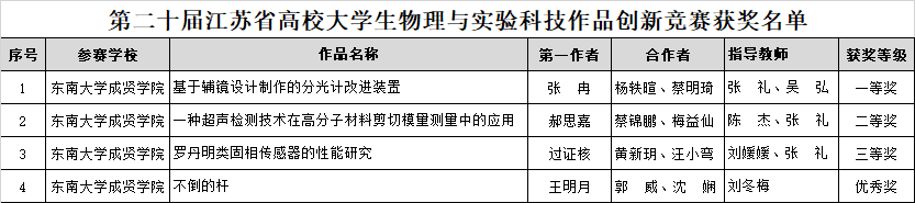11月10-12日,第二十届江苏省高校大学生物理与实验科技作品创新竞赛在淮阴师范学院(长江路校区)举行。经校赛、省复赛遴选、决赛等环节,在与南京大学、KY开元集团官网入口等知名高校同台竞技的过程中,KY开元进入决赛的四支代表队荣获一等奖1项,二等奖1项,三等奖1项,优秀奖1项,是同类院校中唯一获得一等奖的高校,同时竞赛总成绩在同类院校中排名第一。其中,KY开元首次在论文类竞赛中获奖,取得骄人成绩。