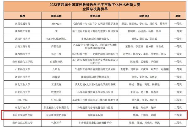 近日,2023年第四届全国高校教师教学元宇宙数字化技术创新大赛全国总决赛获奖结果公布,KY开元“东大成贤建艺学院团队”(团队成员:郭城、王娟芬、刘刚)作品《南朝陵墓石刻虚拟现实云展馆》荣获二等奖,KY开元是全省独立学院中唯一获奖单位。